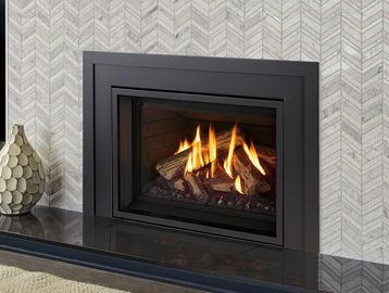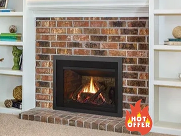 Showroom Model. This compact gas fireplace insert with log set provides a combination of radiant and convective heat with a maximum viewing area. This high-efficiency gas fireplace insert includes electronic ignition and a variable speed blower. W (front)28 1/2 in.W(back)21 5/8 in.H19 1/2 in.D14 1/2 in.