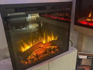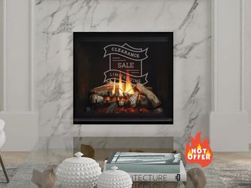 Showroom model with Black surround, black brick liner and birch or traditional log set. Perfect for smaller living spaces, the P33E offers the stylish options of the Panorama family in a compact size. This slim fireplace is frequently featured in bedrooms, kitchens and dens.